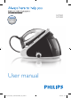 www.philips.com/support EN Fill the water tank with tap water. If you live in an area with very hard water, fast scale build-up may occur. In this case it is recommended to mix 50% distilled water and 50% tap water to prolong the lifetime of your appliance. Caution: Do not put hot water, perfume, vinegar, starch, descaling agents, ironing aids or other chemicals in your appliance. BG Напълнете водния резервоар с чешмяна вода.