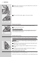 Français 2 Maintenez le fer en position verticale avec l’autre main et appuyez sur la gâchette vapeur pour repasser le vêtement. 3 Touchez légèrement le vêtement avec la semelle du fer pour enlever les plis. 4 Utilisez le bouton Effet pressing et la gâchette vapeur en même temps pour enlever efficacement les plis tenaces.