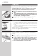 ITALIANO 1 Rimuovete la spina dalla presa di corrente. 2 Posizionate l’apparecchio sull’estremità della superficie di lavoro. 3 Tenete una tazza (con una capacità di almeno 350 ml) sotto la manopola EASY DE-CALC e ruotate la manopola in senso antiorario. 4 Rimuovete la manopola EASY DE-CALC e lasciate fluire l’acqua con le particelle di calcare nella tazza. 5 Quando non fuoriesce più acqua dall’apparecchio, reinserite la manopola EASY DE-CALC e ruotatela in senso orario per fissarla.