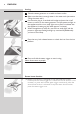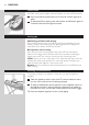ENGLISH 9 Vertical ironing Hot steam is emitted from the iron. Never attempt to remove creases from a garment that someone is wearing. Do not apply steam near your or someone else’s hand. You can use the iron in vertical position to remove wrinkles from hanging fabrics. 1 Hold the iron in vertical position, press the steam trigger and touch the garment slightly with the soleplate.