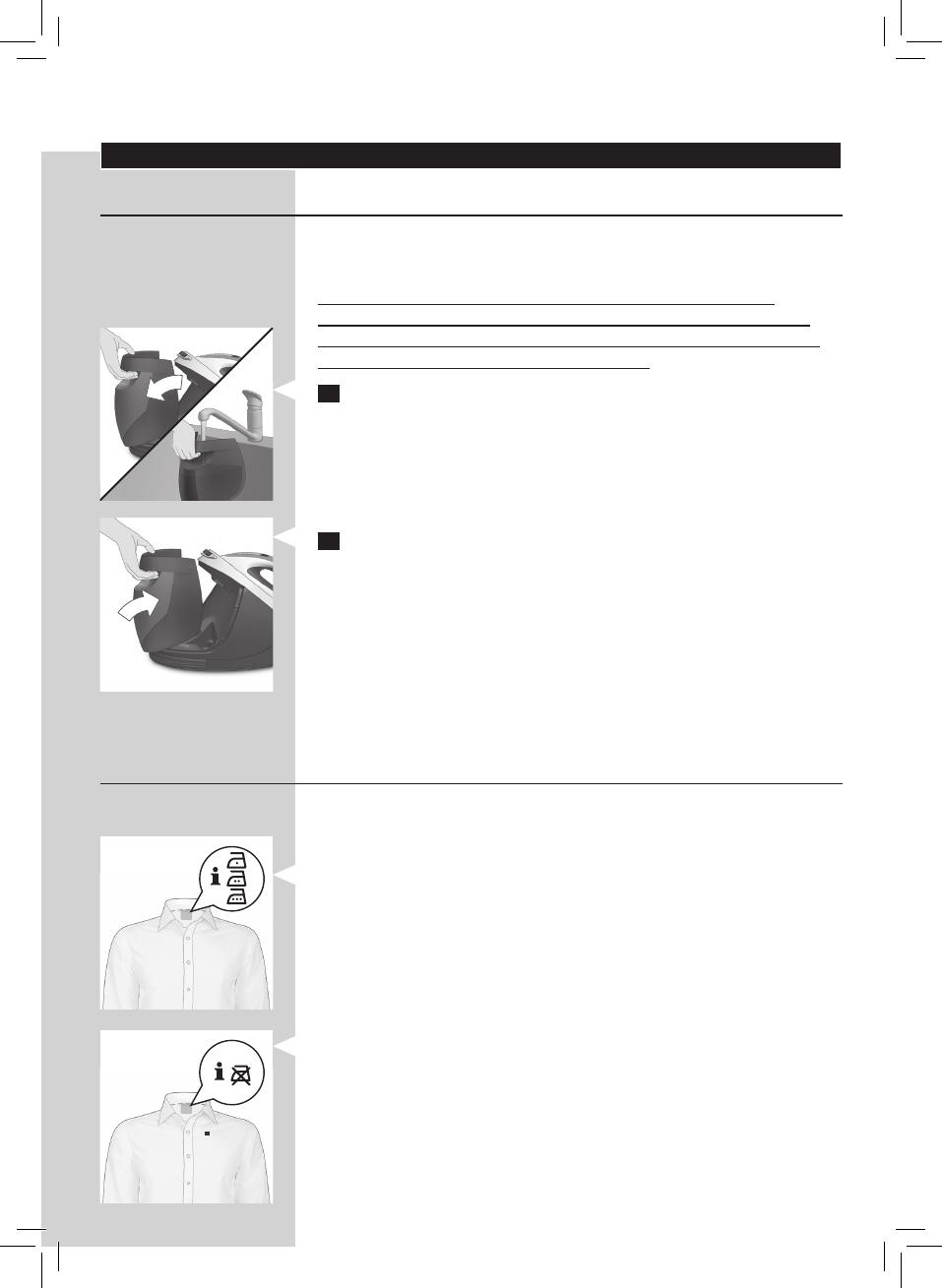 "tom vandtank". Fyld vandtanken, og tryk på dampudløseren