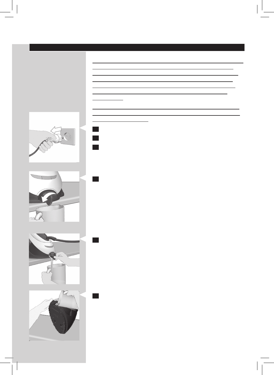 af i mindst to timer, før du afkalker strygesålen, for at undgå
