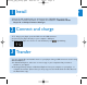 sa13xx_QSG_01eng.qxd 12:28 Page 5 Install EN 1 2006-03-16 1 Insert the CD supplied with your product into the CD ROM drive of your PC. 2 Follow the onscreen instructions to complete the installation of Windows Media Player 10 and Philips Firmware Manager. 2 Connect and charge 1 To charge your player, press and slide out the USB connector. 2 Connect your player directly to your computer’s USB port. 3 Charge your player for 4 hours or until the battery icon stops blinking.
