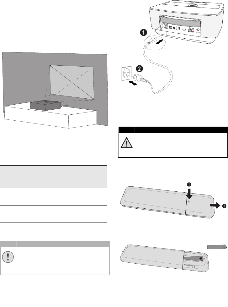 mot projeksjonsflaten. Apparatet kompenserer for for