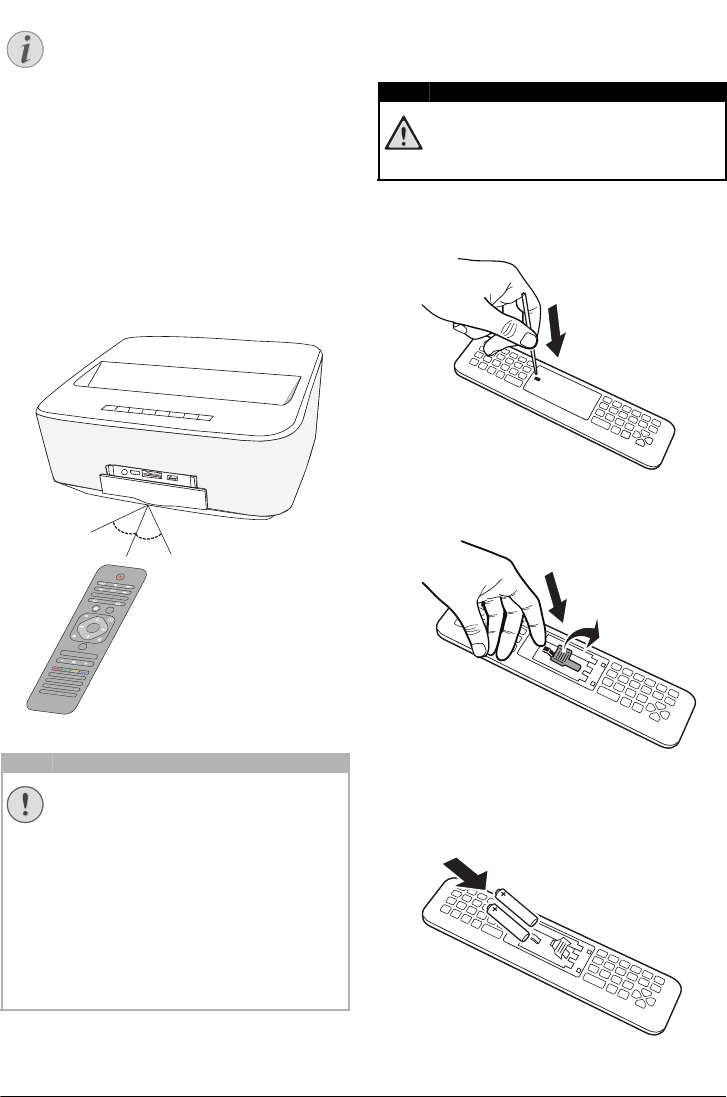 • Ta batteriene ut av fjernkontrollen der-