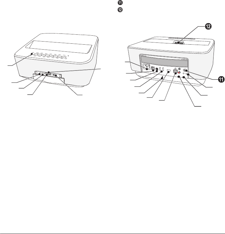 B– Langt trykk: Slår projektoren på/av