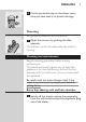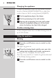 10 English 7 Put the shaving unit back onto the shaver by inserting the hinge into the slot in the rim of the hair chamber and pushing it home until it locks into place (‘click’). 8 Close the shaving unit. Trimmer Clean the trimmer every time you have used it. 1 Switch off the shaver, remove the powerplug from the wall socket and pull the appliance plug out of the shaver. 2 Clean the trimmer with the brush supplied. 3 Lubricate the trimmer teeth with a drop of sewing machine oil every six months.