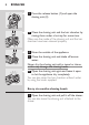 Tiếng Việt 63 4 HQ6073/HQ6070: Mở bộ phận cạo, xoay bánh răng ngược chiều kim đồng hồ (1) và tháo khung giữ (2). 5 Tháo các đầu cạo và thay cái mới vào bộ phận cạo. 6 HQ6075: Lắp các đầu cạo vào lại bộ phận cạo và sau đó lắp lại khung giữ vào bộ phận cạo. Phải đảm bảo là các đầu cạo vừa sát vào khung trống. 7 HQ6073/HQ6070: Lắp đầu cạo trở lại vào bộ phận cạo.