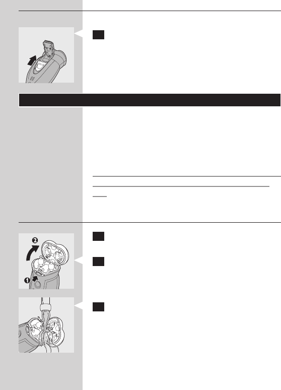 2 Nhấn và thả nt (1) và m bộ phận cạo (2).