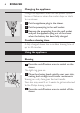 10 English 2 Clean the trimmer with the brush supplied. 3 Lubricate the trimmer teeth with a drop of sewing machine oil every six months. Storage , Put the protection cap on the shaver to prevent damage. , Store the appliance in the pouch. Replacement Replace the shaving heads every two years for optimal shaving results. Replace damaged or worn shaving heads with HQ8 Precise Cutting System Shaving Heads only.