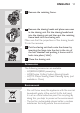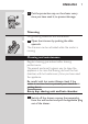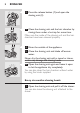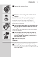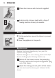 English 11 3 Remove the retaining frame. 4 Remove the shaving heads and place new ones in the shaving unit. Put the shaving heads back into the shaving unit and then put the retaining frame back into the shaving unit. Make sure that the projections of the shaving heads fit into the recesses. 5 Put the shaving unit back onto the shaver by inserting the hinge into the slot in the rim of the hair chamber and pushing it home until it locks into place (‘click’). 6 Close the shaving unit.