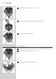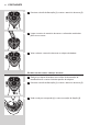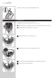 5 ประกอบโครงยึดกลับเขาไปในชุดหัวโกนโดยดันลง (1) แลวหมุนเฟองตามเข็มนาฬิกา (2)
