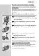 English Every six months: shaving heads 1 Open the shaving unit, turn the lock anticlockwise (1) and remove the retaining frame (2). 2 Clean the cutters and guards with the brush supplied. Do not clean more than one cutter and guard at a time, since they are all matching sets. If you accidentally mix up the cutters and guards, it may take several weeks before optimal shaving performance is restored. 3 Put the shaving heads back into the shaving unit.