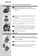 Latviešu 73 4 Ar taisnvirziena un apļveida kustībām ātri virziet skuvekļa galviņas pa ādu. - Vislabāk var noskūties, ja sejas āda ir sausa. - Var paiet divas vai trīs nedēļas, līdz āda pierod pie Philips skūšanas sistēmas. 5 Lai izslēgtu ierīci, nospiediet ieslēgšanas/ izslēgšanas pogu vienu reizi. Gaisma “ieslēgts” nodziest. 6 Iztīriet skuvekli (skatiet nodaļu ‘Tīrīšana un kopšana’). 7 Pēc katras lietošanas uzlieciet skuveklim aizsargvāciņu, lai pasargātu skuvekļa galviņas no bojājumiem.
