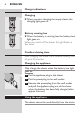 English 11 3 Turn the lock anticlockwise (1) and remove the retaining frame (2). 4 Remove the shaving heads and place new ones in the shaving unit. Put the retaining frame back into the shaving unit and turn the lock clockwise. Make sure that the projections of the shaving heads fit exactly into the recesses. 5 Close the shaving unit. Accessories The following accessories are available: - HQ8500/HQ8000 powerplug. - HQ8 Philips Shaving Heads.
