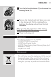 14 English , Clean the cutters and guards with the brush supplied. See chapter ‘Cleaning and maintenance’, section ‘Every six months: shaving heads’. Cause 3: the shaving heads are damaged or worn. , Replace the shaving heads. See chapter ‘Replacement’. 2 The shaver does not work when the on/off button is pressed. The battery is empty. , Recharge the battery. See chapter ‘Charging’. 3 The shaving unit has come off the shaver. The shaving unit has not been placed correctly.