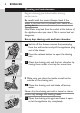 Nederlands 67 2 Reinig de messen en kapjes met het bijgeleverde borsteltje. Maak niet meer dan één mesje en kapje tegelijk schoon, omdat deze op elkaar zijn ingeslepen. Wanneer u de mesjes en kapjes per ongeluk verwisselt, kan het een aantal weken duren voordat het apparaat weer optimaal scheert. 3 Plaats de scheerhoofden terug in de scheerunit. Plaats de opsluitplaat terug in de scheerunit en draai de vergrendelknop rechtsom. 4 Sluit de scheerunit. Tondeuse Maak de tondeuse altijd na gebruik schoon.