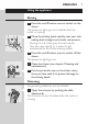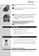 English 2 Close the trimmer (‘click’). Cleaning and maintenance Regular cleaning guarantees better shaving performance. Be careful with hot water. Always check if the water is not too hot, to prevent your hands from getting burnt. Note:Water may leak from the socket at the bottom of the appliance when you rinse it.This is normal and not dangerous. Every day: shaving unit and hair chamber 1 Switch off the shaver, remove the powerplug from the wall socket and pull the appliance plug out of the shaver.