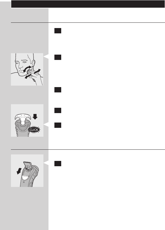2 Move the shaving heads quickly over your skin,