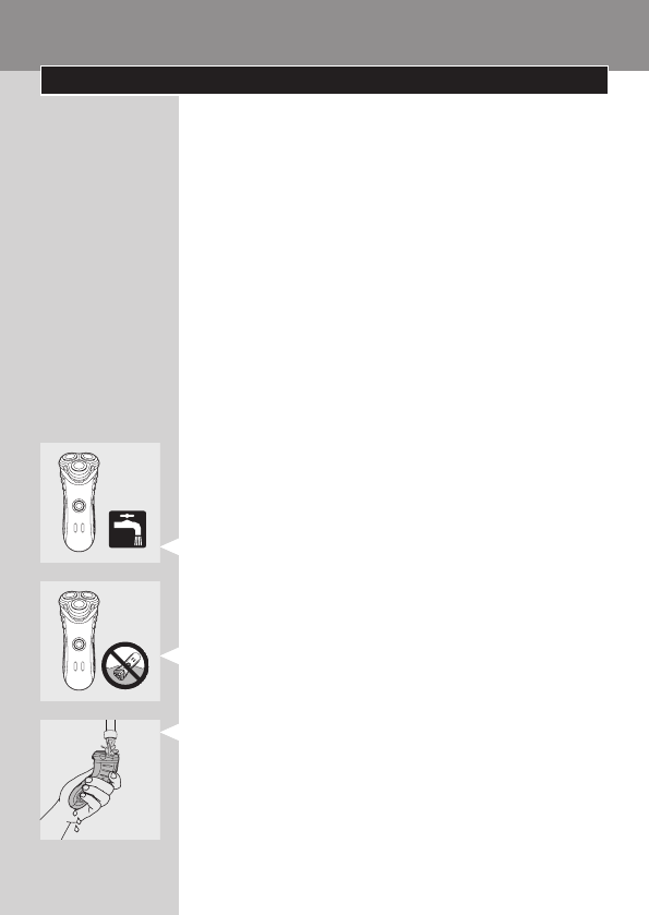 要在水龍頭下清潔電鬍刀之前,請務必將電