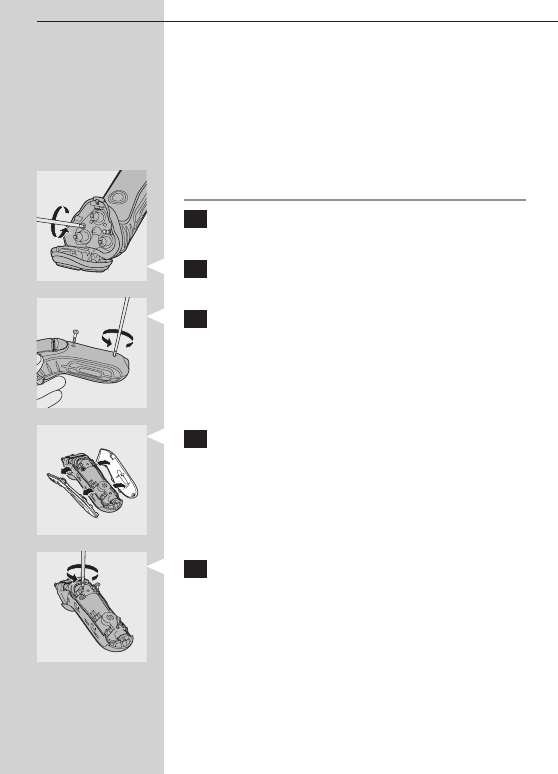 3 轉開電鬍刀背面的的兩個螺絲,拆下握柄的