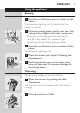 English 11 4 Remove the shaving heads and place new ones in the shaving unit. Put the retaining frame back into the shaving unit and turn the lock clockwise. Make sure that the projections of the shaving heads fit exactly into the recesses. 5 Close the shaving unit. Accessories The following accessories are available: - HQ8500/HQ8000 powerplug. - HQ8 Philips Shaving Heads. - HQ110 Philips Shaving Head Cleaning Spray. - HQ8010 car cord.