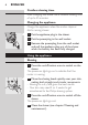 English 5 Put the protection cap on the shaver every time you have used it, to prevent damage to the shaving heads. Trimming For grooming sideburns and moustache. 1 Open the trimmer by pushing the slide downwards. The trimmer can be activated while the motor is running. 2 Close the trimmer (‘click’). Cleaning and maintenance Regular cleaning guarantees better shaving performance. Be careful with hot water. Always check if the water is not too hot, to prevent your hands from getting burnt.