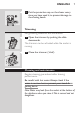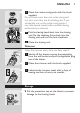 English 5 Put the protection cap on the shaver every time you have used it, to prevent damage to the shaving heads. Trimming For grooming sideburns and moustache. 1 Open the trimmer by pushing the slide downwards. The trimmer can be activated while the motor is running. 2 Close the trimmer (‘click’). Cleaning and maintenance Regular cleaning guarantees better shaving performance. Be careful with hot water. Always check if the water is not too hot, to prevent your hands from getting burnt.