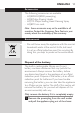 24 Dansk Reklamationsret og service For alle yderligere oplysninger eller ved eventuelle problemer med apparatet henvises til Philips hjemmeside på adressen www.philips.com eller det lokale Philips Kundecenter (telefonnumre findes i vedlagte “Worldwide Guarantee”-folder). Hvis der ikke findes et kundecenter i dit land, bedes du venligst kontakte din lokale Philips-forhandler.