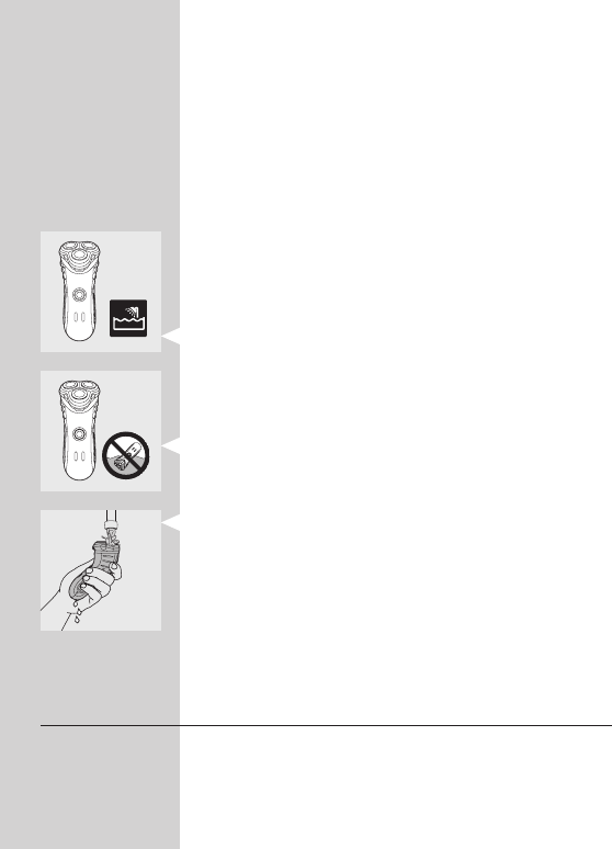- Μη βυθίζετε την ξυριστική μηχανή σε νερό.