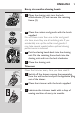 14 English 3 The shaving unit has come off the shaver. The shaving unit has not been placed correctly. ,, If the shaving unit becomes detached from the shaver, you can easily put it back by inserting the hinge into the slot in the rim of the hair chamber and pushing it home until it locks into place (‘click’).