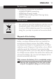 12 English 2 Let the shaver run until it stops, undo the two screws in the hair chamber and remove it. 3 Undo the two screws at the back of the shaver and remove the back panel of the housing. 4 Remove the side panels by pulling them off the sealed power unit. 5 Undo the three screws in the sealed power unit. 6 Remove the back panel of the sealed power unit by means of a screwdriver. 7 Remove the battery. Be careful, the battery strips are very sharp.