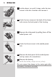 12 English 2 Let the shaver run until it stops, undo the two screws in the hair chamber and remove it. 3 Undo the two screws at the back of the shaver and remove the back panel of the housing. 4 Remove the side panels by pulling them off the sealed power unit. 5 Undo the three screws in the sealed power unit. 6 Remove the back panel of the sealed power unit by means of a screwdriver. 7 Remove the battery. Be careful, the battery strips are very sharp.