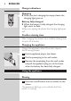 18 Dansk 2 Bevæg skærene hurtigt hen over huden både i lige strøg og i cirkelbevægelser. - Resultatet bliver bedst, hvis huden er tør. - Vær opmærksom på, at der kan gå 2-3 uger, før din hud helt har vænnet sig til Philips’ barberingssystem. 3 Tryk en gang på on/off-knappen for at slukke for shaveren. Kontrollampen slukker. 4 Rengør shaveren (se afsnittet “Rengøring og vedligeholdelse”). 5 Sæt altid beskyttelseskappen på shaveren efter brug for at undgå at beskadige skærene.