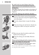English Every six months: shaving heads 1 Open the shaving unit, turn the lock anticlockwise (1) and remove the retaining frame (2). 2 Clean the cutters and guards with the brush supplied. Do not clean more than one cutter and guard at a time, since they are all matching sets. If you accidentally mix up the cutters and guards, it may take several weeks before optimal shaving performance is restored. 3 Put the shaving heads back into the shaving unit.