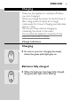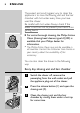 6 ENGLISH Batteries running low the batteries are running low, the red C ◗ When pilot light goes on.When you switch the shaver off, the red pilot light blinks for 4 seconds. Charging the appliance Charge the appliance when the red pilot light blinks. Do not recharge the shaver in a closed pouch. C 1 Put the appliance plug in the shaver. 2 Put the powerplug in the wall socket.