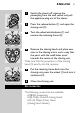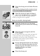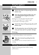 ENGLISH 1 Switch the shaver off, remove the powerplug from the wall socket and pull the appliance plug out of the shaver. C 2 Press the release button (1) and open the shaving unit (2). C 3 Turn the wheel anticlockwise (1) and remove the retaining frame (2). C 4 2 1 2 11 1 1 2 C Remove the shaving heads and place new ones in the shaving unit in such a way that the parts with the small holes point towards the centre of the shaving unit.