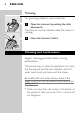 6 ENGLISH Battery running low (HQ8150 only) ◗ When the battery is running low, the bottom light burns red. When you switch the shaver off, this light blinks a few times. Cordless shaving time A fully charged shaver has a cordless shaving time of up to 55 minutes. Charging the appliance HQ8150 only: Charge the shaver when the bottom light burns red. Do not recharge the shaver in a closed pouch. C 1 Put the appliance plug in the shaver. 2 Put the powerplug in the wall socket.