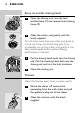 ENGLISH 9 Every day: shaving unit and hair chamber 1 Switch the shaver off, remove the powerplug from the wall socket and pull the appliance plug out of the shaver. C 2 Press the release button to open the shaving unit. C 3 Clean the shaving unit and the hair chamber by rinsing them under a hot tap for some time. sure you clean the inside as well as the C ◗ Make outside of the shaving unit. 4 Close the shaving unit and shake off excess water.