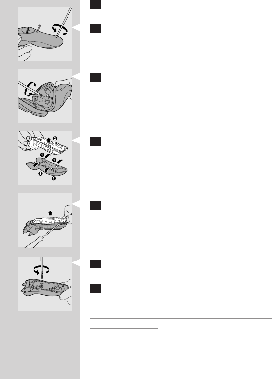 5 Ohněte 4 háčky do stran (1) a vyjměte napájecí