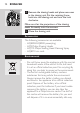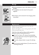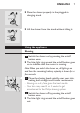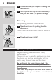 English 15 - Cause 2: the appliance is not connected to the mains. Put the powerplug in the wall socket. 3 The shaving unit has come off the shaver. - The shaving unit has not been placed correctly. - If the shaving unit becomes detached from the shaver, you can easily put it back by inserting the hinge into the slot in the rim of the hair chamber and pushing it home until it locks into place (‘click’).