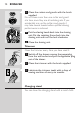 English 4 Clean the shaver (see chapter ‘Cleaning and maintenance’). 5 Put the protection cap on the shaver every time you have used it, to prevent damage. Trimming For grooming sideburns and moustache. 1 Open the trimmer by pushing the slide downwards. The trimmer can be activated while the motor is running. 2 Close the trimmer (‘click’). Cleaning and maintenance Regular cleaning guarantees better shaving performance.