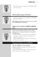 English 9 -- When the shaver is charging, the CHARGE light is on continuously. ’Battery fully charged’ indication -- When the battery is fully charged, the CHARGE light starts flashing. Note:When you disconnect the shaver from the mains, the CHARGE light stops flashing. ’Battery low’ indication (HQ8251/HQ8250 only) Note: If the rechargeable battery runs low during shaving, you can connect the shaver to the mains to finish the shave.