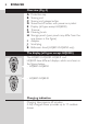 8 English Overview (Fig. 4) A B C D E F G H Protection cap Shaving unit Shaving unit release button Shaver on/off button with power-on symbol Display (all types except HQ8200) Trimmer Cleaning brush Storage pouch (your pouch may differ from the one shown in the figure) I Adapter J Small plug K Bathroom stand (HQ8251/HQ8250 only) The display (all types except HQ8200) The HQ8251, HQ8250, HQ8241 and HQ8240 have different displays, which are shown in the figures below.