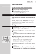 English 11 Note:Water may leak from the socket at the bottom of the appliance when you rinse it.This is normal and not dangerous. Cleaning the shaving unit under the tap 1 Switch off the shaver and disconnect it from the mains. 2 Press the release button to open the shaving unit. 3 Rinse the shaving unit and hair chamber under a hot tap for some time. - Make sure that you clean the inside as well as the outside of the shaving unit. Be careful with hot water.