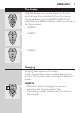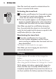 English 15 4 Clean the shaver (see chapter ‘Cleaning and maintenance’). Trimming You can use the trimmer to groom your sideburns and moustache. 1 Press the on/off button once to switch on the shaver. ,, The power-on symbol in the on/off button lights up. 2 Push the trimmer slide downwards to open the trimmer. ,, You can now start trimming. 3 After trimming, close the trimmer (‘click’) and switch off the shaver.
