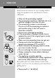 ENGLISH 21 ◗ Clean the cutters and guards with the brush supplied. See chapter 'Cleaning and maintenance', section 'Every six months: shaving heads'. B Cause 3: the shaving heads are damaged or worn. ◗ Replace the shaving heads. See chapter 'Replacement'. 2 B The shaver does not work when the on/off button is pressed. Cause 1: the battery is empty. ◗ Recharge the battery. See chapter 'Charging'. B Cause 2: the appliance is not connected to the mains. ◗ Put the powerplug in the wall socket.