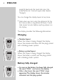 РУССКИЙ 47 Низкая зарядка аккумулятора режим дисплея: C ◗ПриЧисловой разрядке аккумулятора после выключения электробритвы на дисплее начинает мигать числовое значение оставшихся минут работы электробритвы и значок сетевой вилки. Только для модели HQ9190: также прозвучат несколько коротких звуковых сигналов.
