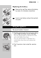 70 NEDERLANDS C 2 Plaats het klokje in de oplader (1) en draai het rechtsom (2) tot het vastklikt. De tijd instellen de tijd in door op het kleine knopje aan C ◗ Stel de achterzijde van het klokje te drukken. De tijd kan alleen vooruit worden gezet. De batterij vervangen C 1 Verwijder het deksel.Verwijder vervolgens de batterij met behulp van een precisieschroevendraaier. C 2 Plaats een nieuwe batterij en duw het deksel terug op zijn plaats.