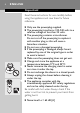 18 ENGLISH Replace damaged or worn shaving heads with HQ9 Philips shaving heads only. 1 Switch the shaver off, remove the powerplug from the wall socket and pull the appliance plug out of the shaver. C 2 Press the release button to open the shaving unit. C 3 Turn the lock anticlockwise (1) and remove the retaining frame (2). C 4 C Remove the shaving heads and place new ones in the shaving unit. Make sure that the projections of the shaving heads fit exactly into the recesses.